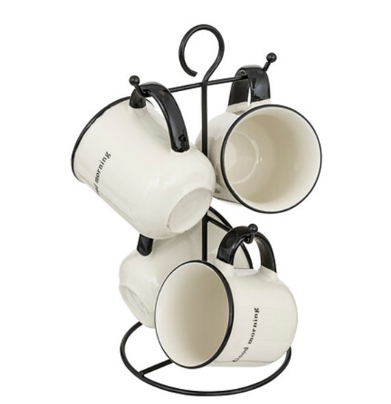 Il set "Alix" comprende 4 tazze in porcellana da 20 cl con finitura bianco e nero, organizzate in un pratico cesto porta-tazze. Perfette per tè, caffè o tisane, queste tazze uniscono stile e funzionalità, ideali per la tua cucina o come idea regalo elegante.