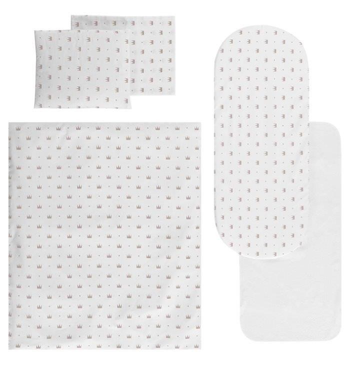Set biancheria per passeggino con protezione impermeabile 6 pezzi Corone Bianche Lorelli