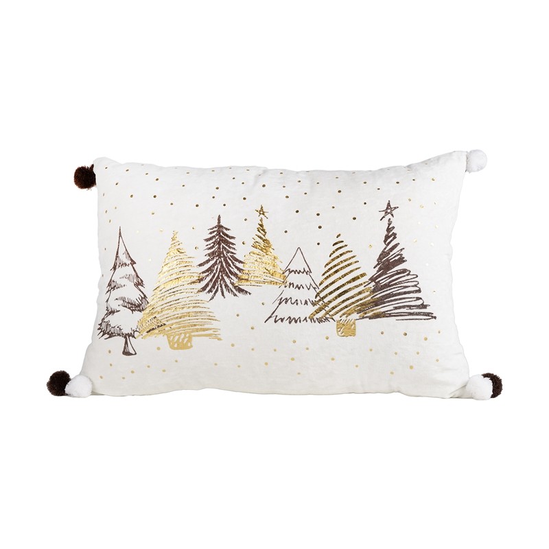 Decorazione cuscino di Natale 40x60cm in velluto avorio con alberi e pom-pom - La magia di Natale a casa tua
