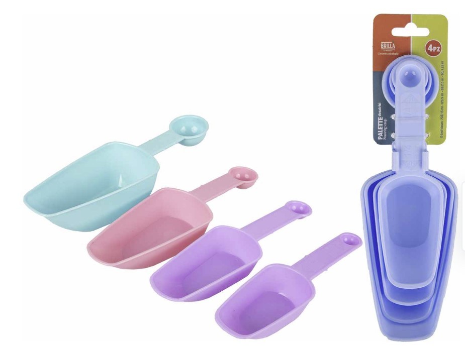 Palette dosatrici da cucina 4 pezzi, dimensioni assortite (8 dosi). colori assortiti. lavabili in lavastoviglie. idonei al contatto con alimenti.