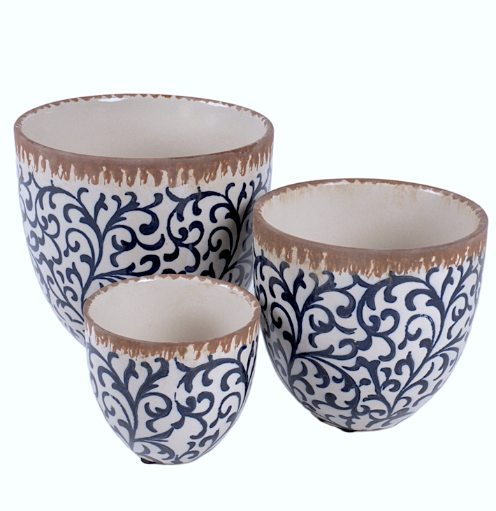 CACHEPOT 140686 3 MIS CERAMICA BIANCO/BLU 17X16CM