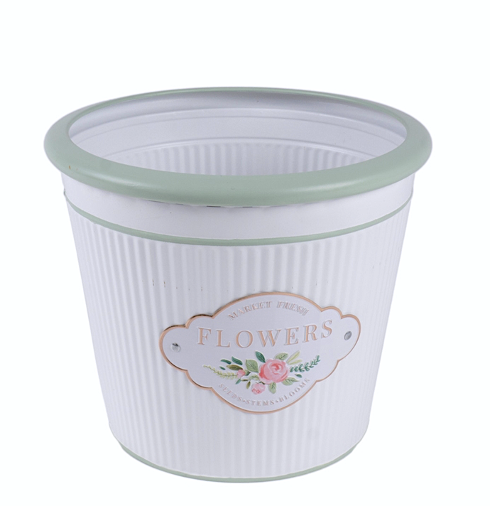 CACHEPOT 140957 METALLO 25X21CM BIANCO/VERDE
