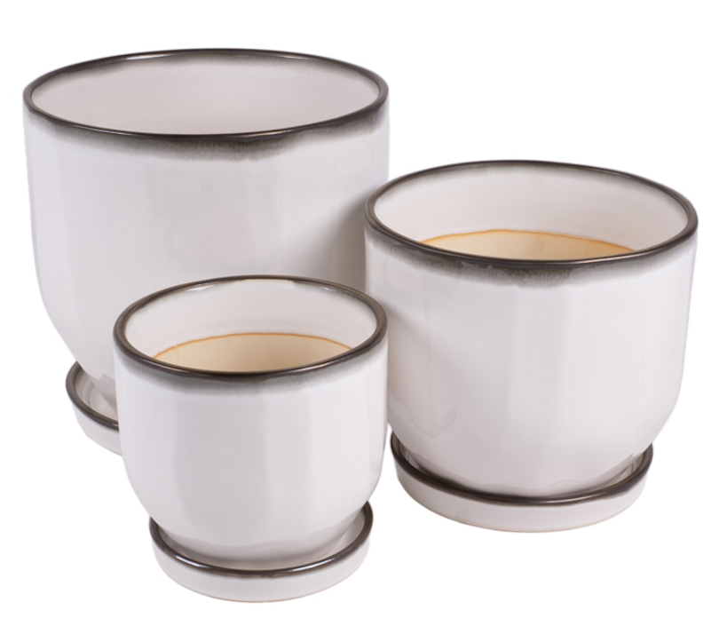 CACHEPOT 140690 2 MIS CERAMICA GRIGIO CON SOTTOVASO 14X13CM