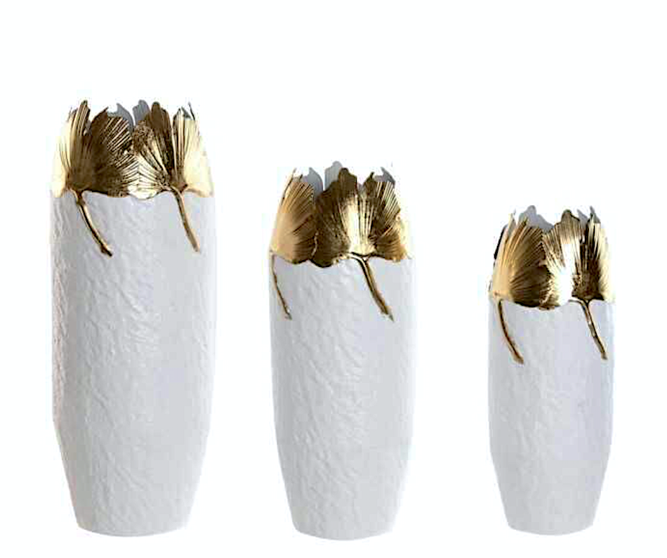 VASO JR218847 3 MIS METALLO 21X55CM BIANCO/ORO